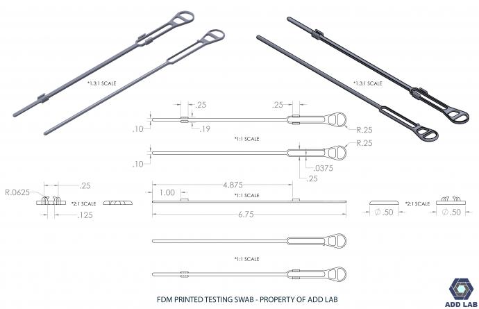 The NJIT swab is designed to address the many distinct needs of the COVID-19 induced swab supply shortage. Firstly, its design is optimized in terms of weight and volume, which translates to reduced print times and therefore improved distribution channels. With each unit requiring only 2 grams of PLA filament, cost has been reduced to pennies, approximately 4 cents per unit. With hospitals around the world experiencing shortages of testing swabs, it’s important that whatever solution we offer exists in a fashion that is accessible, affordable, and rapidly deployable for the best results.