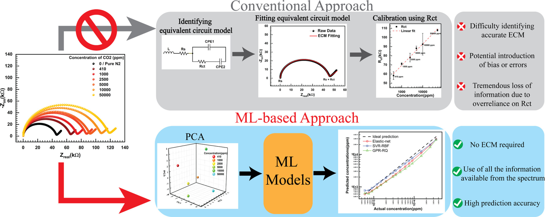 Instead of fitting complex EIS spectra to equivalent circuits (which introduces subjectivity, bias, and significant information loss), we apply supervised machine learning models to raw impedance data for direct and accurate concentration predictions.