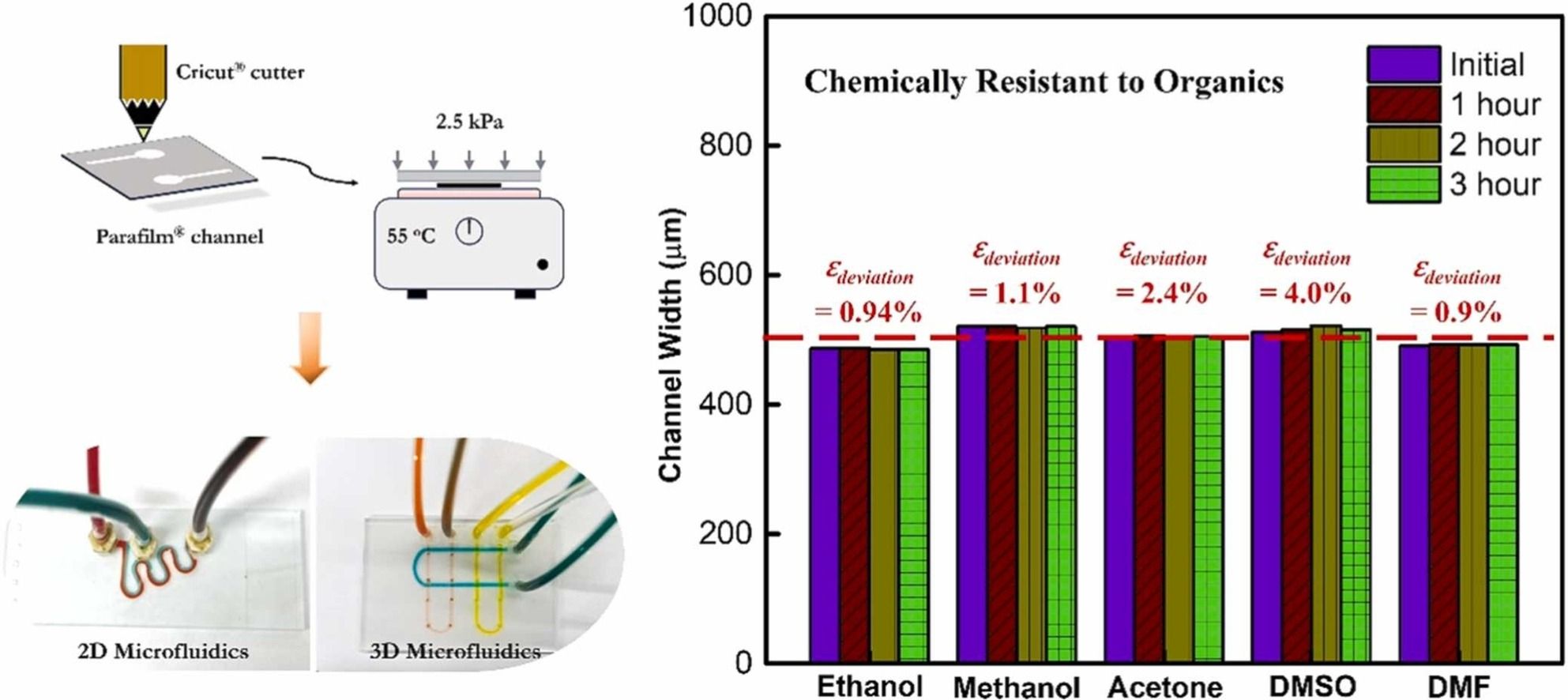 2. Li, Zhenglong, Niranjan Haridas, Sreerag Kaaliveetil, Yu-Hsuan Cheng, Charmi Chande, Veronica Perez, Amir K. Miri, and Sagnik Basuray. "Low-cost rapid prototyping for microfluidics using Parafilm®-based microchannels for low resource settings." Sensors and Actuators B: Chemical 404 (2024): 135212.