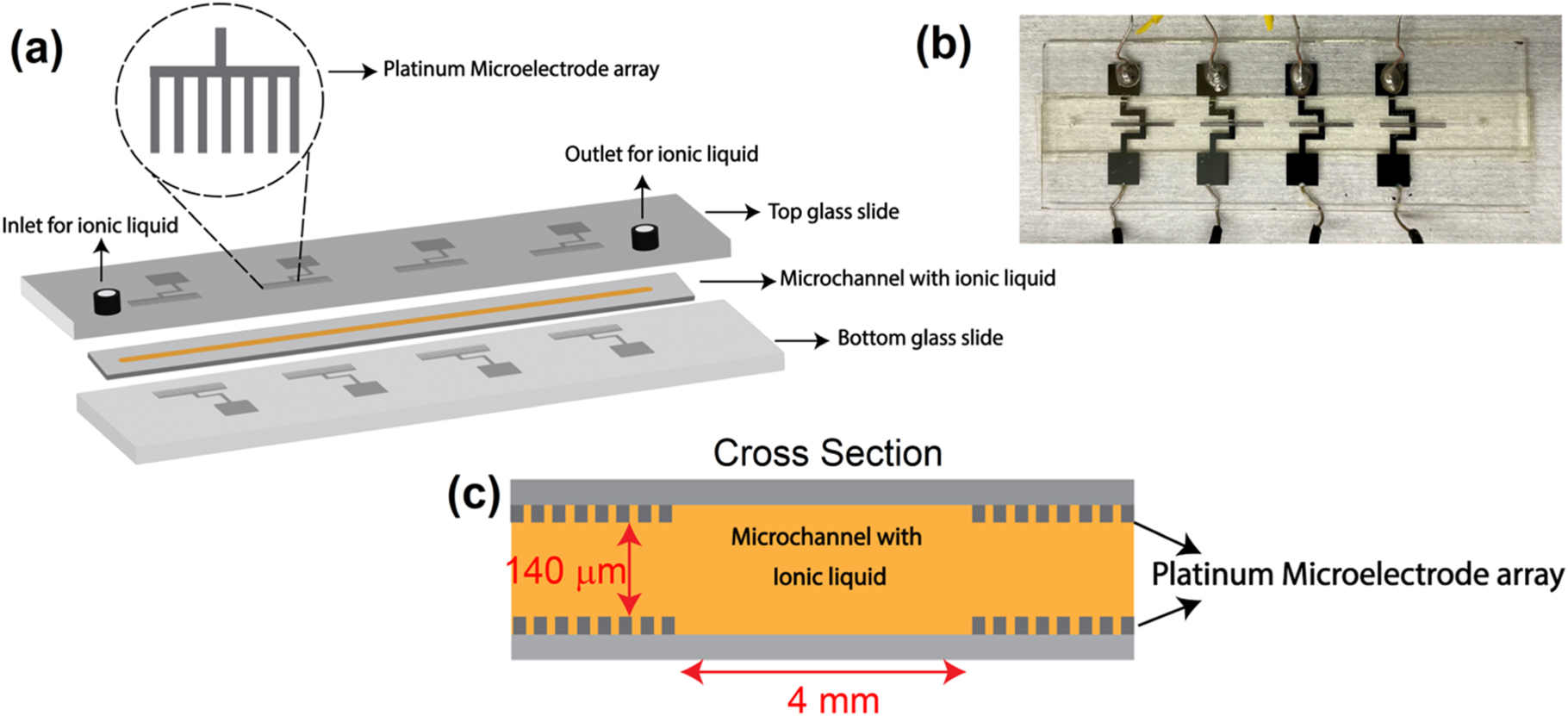 3. Kaaliveetil, Sreerag, Yun-Yang Lee, Zhenglong Li, Yu-Hsuan Cheng, Niranjan Haridas Menon, Saudagar Dongare, Burcu Gurkan, and Sagnik Basuray. "Ionic Liquid-Packed Microfluidic Device with Non-Planar Microelectrode as a Miniaturized Electrochemical Gas Sensor." Journal of The Electrochemical Society 170, no. 8 (2023): 087508. (link: 10.1149/1945-7111/aced6e)