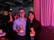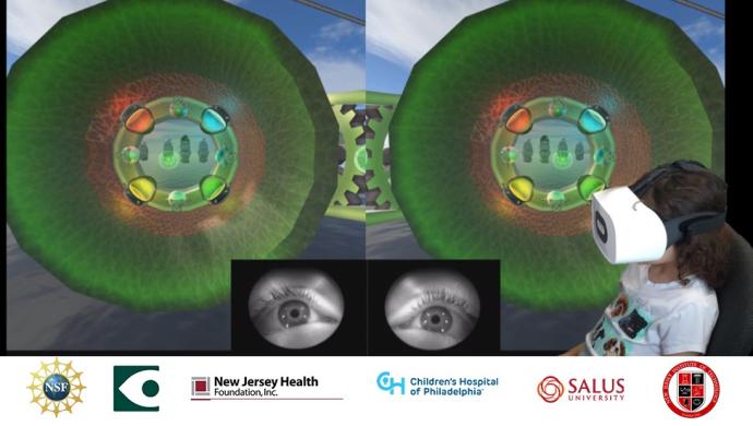 The Virtual Reality Vision Therapy Project is a finalist for the 2018 Breakthrough Auggie Awards. The Breakthrough Auggies honor academic-industry collaborations using AR, VR and MR that showcase innovation with the greatest potential to spark mass adoption and industrial use of these immersive technologies. Read more about the project on Medium. Team members Tara L. Alvarez, Ph.D., and John Vito d'Antonio-Bertagnolli, M.S., will attend the Augmented World Expo in Munich on October 18-19. Thank you to the NJIT community for a social media push to gather votes for the project, as well as to project sponsors, including the NSF I-Corps program, the NIH, The Eye Institute at Salus University, the EPICS in IEEE program, the New Jersey Health Foundation, and NJIT itself.